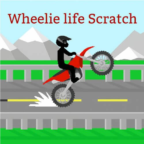 Wheelie Life Scratch is a motorcycle driving game. It features an endless road with mountains in the background. You can unlock new bikes with smoother suspension as rewards. The design is inspired by real-life stunt biking culture.